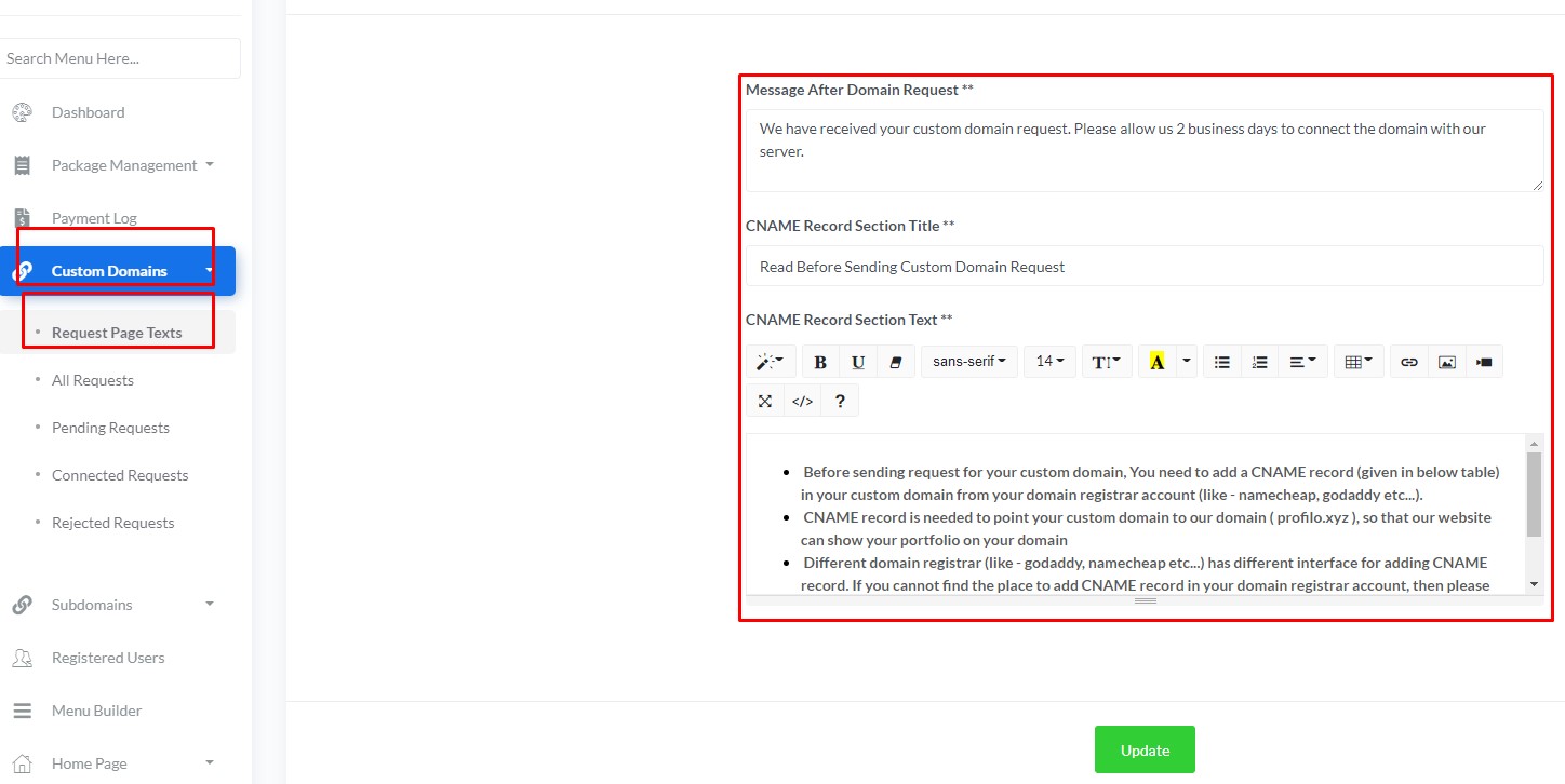 Users can purchase this packages & have a user dashboard to create Multilingual course website, unlimited vCards for them. User's course websites, vCards are also RTL supported. They will also have other cool features like - Payment Gateways, Lesson Content Builder, Enrolment Report, Coupon , Advanced QR Builder, Drag & Drop Menu Builder, Popup Builder etc.... Users can also show their course website, vCards in their custom domain / subdomain ({username}.your_domain_name) / path based URL (your_domain_name/{username})